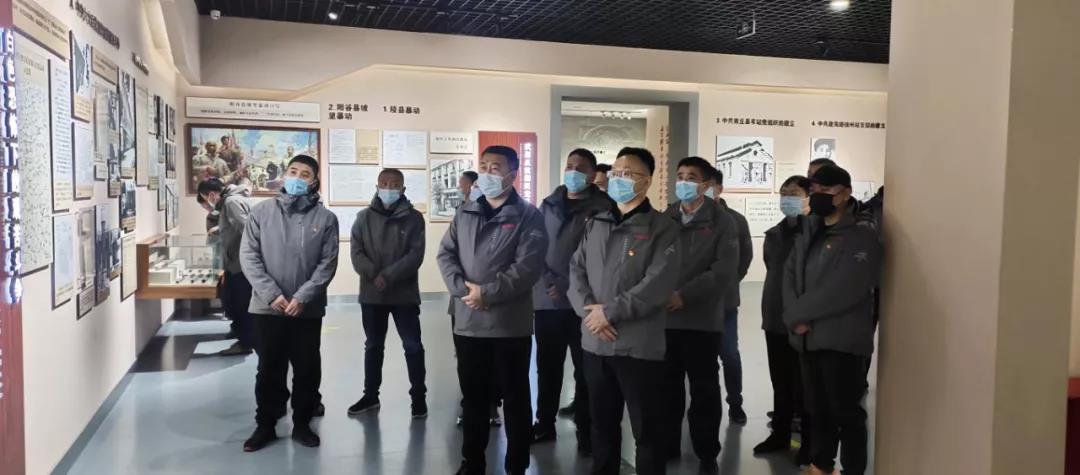 在菏澤冀魯豫邊區(qū)革命紀念館序廳內(nèi),由支部書記肖培飛同志領誓,全體黨員整齊列隊,鄭重舉起右手,集體重溫入黨誓詞。