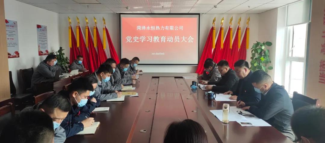 為進(jìn)一步提高黨員干部學(xué)黨史、強(qiáng)信念的主動(dòng)性和積極性,推動(dòng)黨史學(xué)習(xí)教育真正學(xué)有所悟、學(xué)有所成,4月8日,菏澤永恒熱力召開黨史學(xué)習(xí)教育動(dòng)員大會(huì),對(duì)黨史學(xué)習(xí)教育進(jìn)行專題安排部署。會(huì)議由公司黨支部書記、董事長(zhǎng)肖培飛主持,中層副職以上干部、全體黨員、入黨積極分子共計(jì)44人參加了會(huì)議。