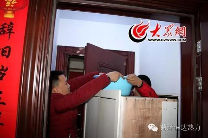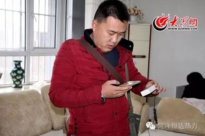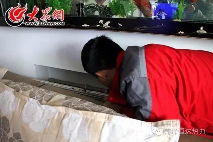 劉明賢在D棟12樓居民張大爺家中測(cè)試溫度,室溫剛剛達(dá)標(biāo),劉明賢和任永輝開(kāi)始查找原因