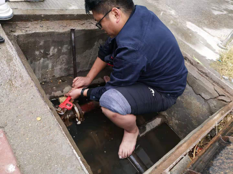 接到電話后,張亞、賈季龍立即奔赴事故現(xiàn)場。此時,現(xiàn)場大量的水沖破閥門順著閥門井噴涌而出,周圍的水泥地面已被大面積積水覆蓋,使得周圍居民無法靠近。為保證居民用暖不受影響,情況緊急,張亞不得不脫掉外套及鞋襪,赤膊赤腳頂著噴涌出的暖氣水上前查看漏水原因。