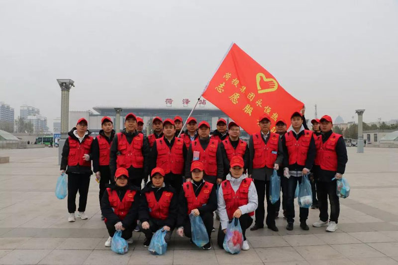 清晨7時許,天空還下著蒙蒙細雨,菏澤永恒熱力志愿者早已集結完畢,身著整齊的志愿者服裝,手拿垃圾袋、小鏟子、宣傳冊,在副董事長田濤同志的帶領下,大家從公司出發(fā),一路經(jīng)人民路中華路行至火車站再折返。
