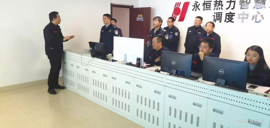 座談結(jié)束后,市公安局城市警察支隊(duì)李政委一行參觀(guān)了永恒熱力智慧熱網(wǎng)調(diào)度中心,了解目前供熱運(yùn)行現(xiàn)狀。