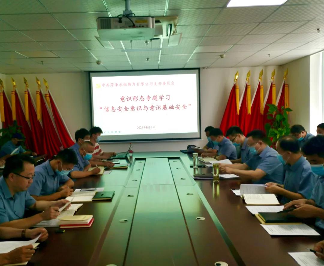為進(jìn)一步增強(qiáng)職工安全意識(shí),筑牢意識(shí)形態(tài)安全陣地,8月6日上午,菏澤永恒熱力有限公司黨支部邀請(qǐng)山東新潮信息技術(shù)有限公司網(wǎng)絡(luò)安全講師閔躍,為職工進(jìn)行了主題為“信息安全意識(shí)與基礎(chǔ)安全意識(shí)”的意識(shí)形態(tài)專題培訓(xùn)。培訓(xùn)由黨支部書記肖培飛主持,全體黨員、發(fā)展對(duì)象、入黨積極分子、中層副職及以上人員參加了本次講座。