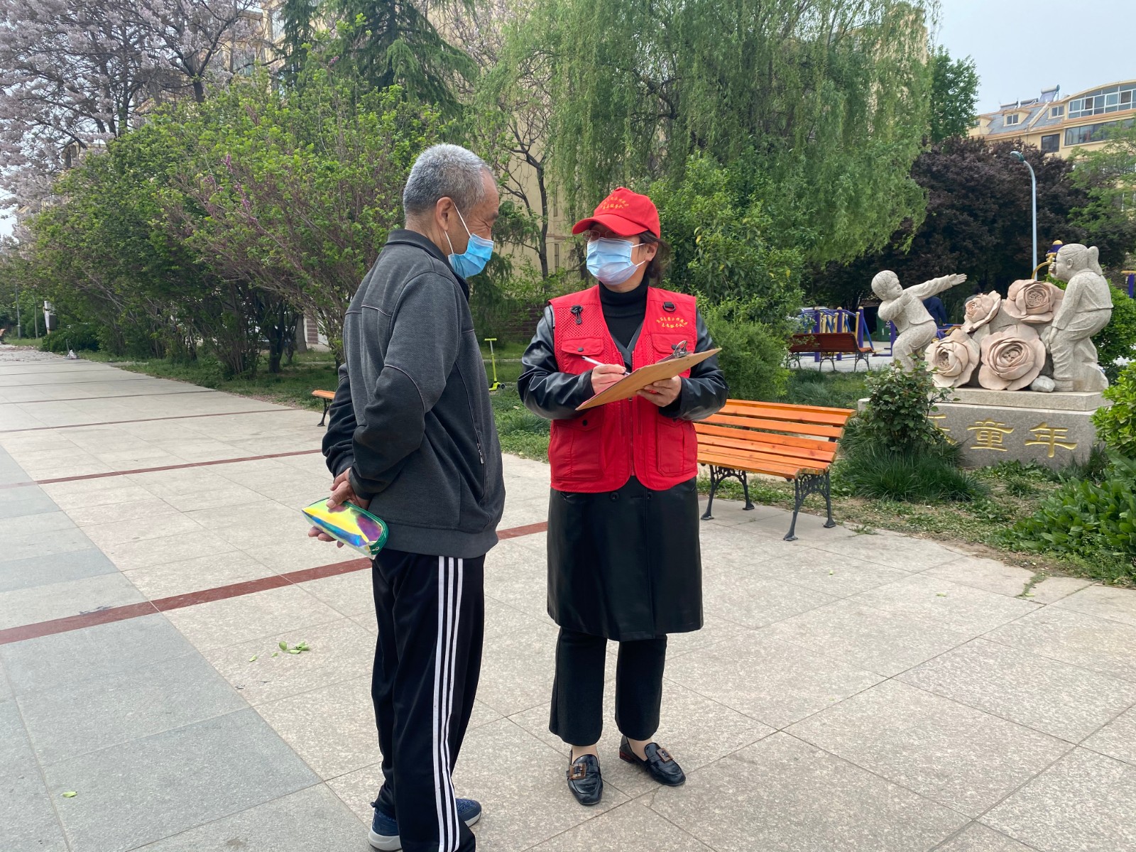 ▲志愿者走訪宣傳疫情防控政策知識(shí)