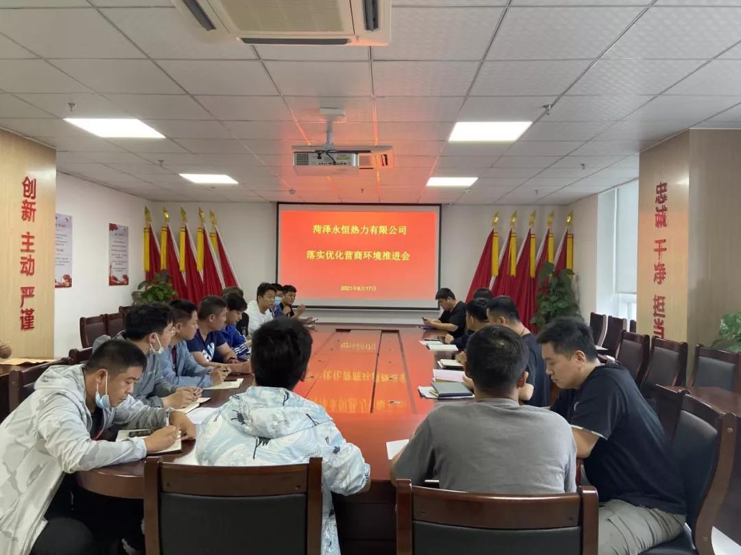 為深入貫徹落實(shí)省、市和上級(jí)主管部門關(guān)于優(yōu)化營(yíng)商環(huán)境工作要求,6月17日下午,菏澤永恒熱力有限公司組織在建工程各施工單位召開(kāi)專題會(huì)議,認(rèn)真?zhèn)鬟_(dá)學(xué)習(xí)《菏澤市持續(xù)深入優(yōu)化營(yíng)商環(huán)境和推進(jìn)政府職能轉(zhuǎn)變領(lǐng)導(dǎo)小組擴(kuò)大會(huì)議》精神,并部署具體工作。