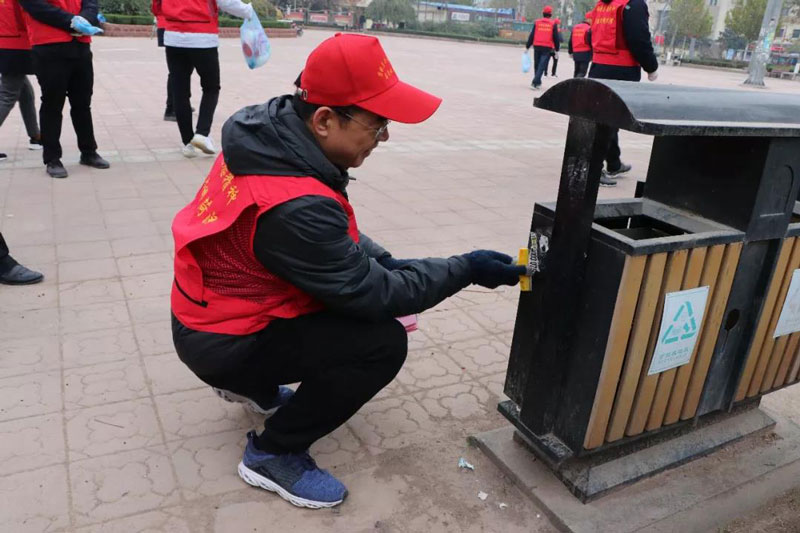 清晨7時許,天空還下著蒙蒙細雨,菏澤永恒熱力志愿者早已集結完畢,身著整齊的志愿者服裝,手拿垃圾袋、小鏟子、宣傳冊,在副董事長田濤同志的帶領下,大家從公司出發(fā),一路經(jīng)人民路中華路行至火車站再折返。