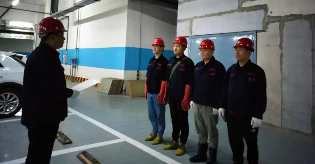 演練正式開始。按照事前部署,管理員趙飛在巡查換熱站時,打開換熱站門,發(fā)現(xiàn)地面有積水,排除自來水泄露原因,趙飛立刻判定是設(shè)備某處漏水。他快速穿戴好絕緣裝備,掏出工具包中的電筆,檢測地面和配電柜是否存在漏電隱患。隱患排除后,趙飛打開站內(nèi)照明設(shè)備,機動組人員進入站內(nèi)排查漏水原因。