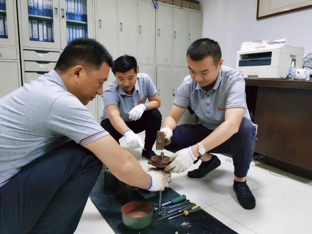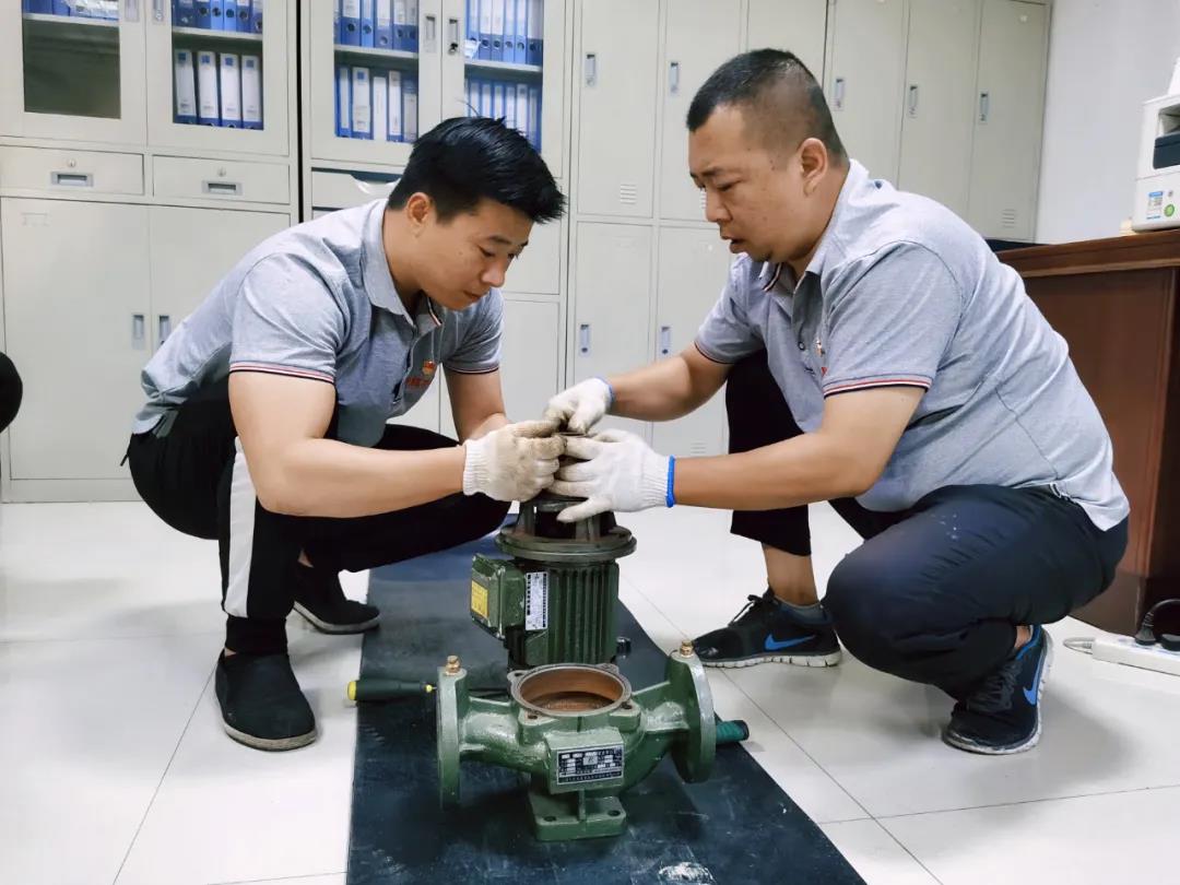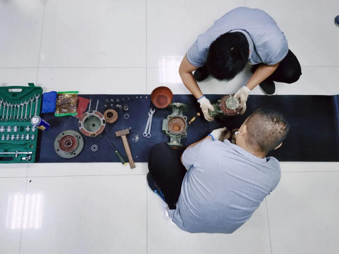 運(yùn)營管理五部利用工作間隙,開展此次技能比武活動(dòng)。活動(dòng)過程中,王志剛、高保山現(xiàn)場(chǎng)示范講解循環(huán)泵拆卸、安裝方法及軸承和水封更換、保養(yǎng)流程標(biāo)準(zhǔn),同事之間兩兩搭檔,操作練習(xí)并進(jìn)行技能大比拼。