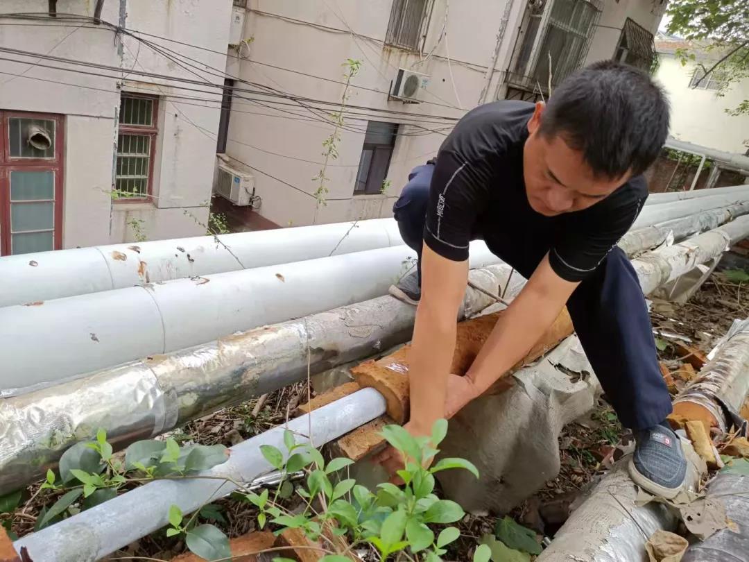運(yùn)營(yíng)管理六部轄區(qū)內(nèi)老舊小區(qū)較多,小區(qū)整體設(shè)施已開始出現(xiàn)老化現(xiàn)象,加上管道及外保溫材料常年經(jīng)受風(fēng)吹日曬,極易破損。在外保溫材料中,保溫棉起到很重要的作用,如果發(fā)生脫落或缺失會(huì)造成供暖管線的熱量損耗,對(duì)供暖質(zhì)量影響較大。為此,小區(qū)管理員加大對(duì)老舊小區(qū)的巡查力度,巡查過程中發(fā)現(xiàn)有部分二網(wǎng)管道保溫材料缺失、脫落,管理員發(fā)現(xiàn)后立即對(duì)缺失部分進(jìn)行修補(bǔ)。