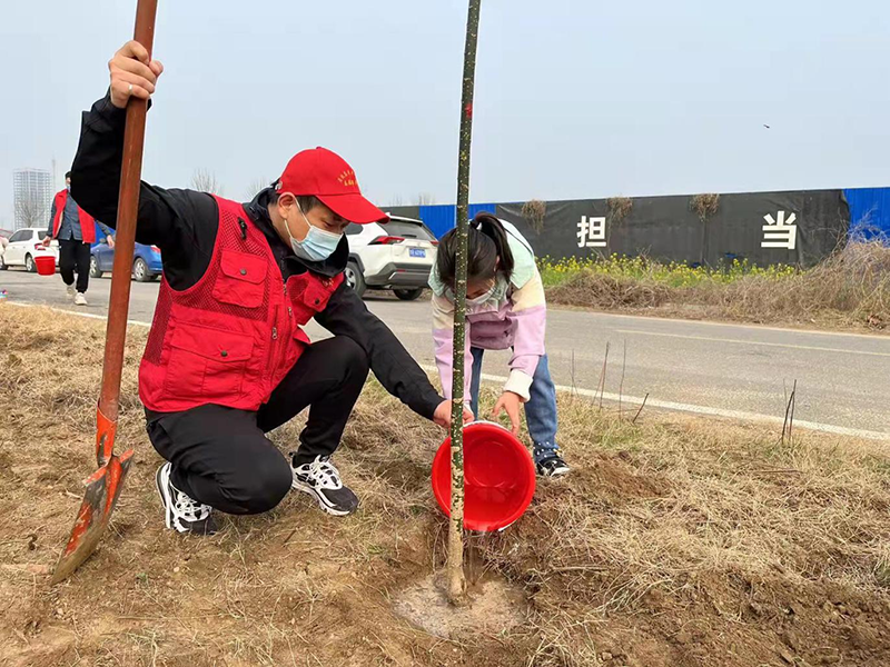 3月12日,植樹節(jié)當(dāng)天,永恒熱力志愿服務(wù)隊(duì)再次出發(fā),開展義務(wù)植樹活動(dòng)。此次活動(dòng)正值周末,不少志愿者家庭出動(dòng),現(xiàn)場小志愿者們挖坑、扶樹、澆水,興致高漲。轉(zhuǎn)眼間,一棵棵樹苗迎風(fēng)挺立,形成小小“生態(tài)園”。