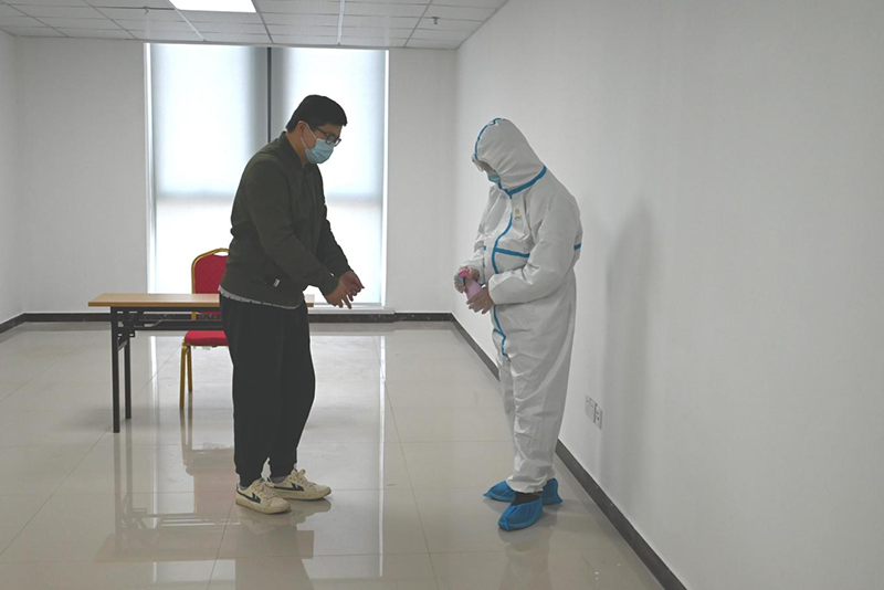 疫情防控應(yīng)急指揮部組長肖培飛獲悉情況后,第一時間命令啟動應(yīng)急處置預(yù)案,兩位身著防護(hù)服的防疫小組成員迅速抵達(dá)現(xiàn)場,引導(dǎo)該員工到隔離室隔離。隨后,疫情防控應(yīng)急指揮部按要求向集團(tuán)公司、社區(qū)、衛(wèi)生防疫等部門進(jìn)行報備,并根據(jù)要求,安排專車將該員工轉(zhuǎn)移至熱定點(diǎn)收治醫(yī)院進(jìn)行進(jìn)一步檢查。