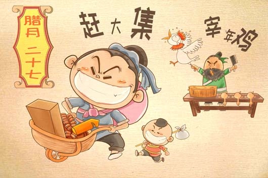 民間有諺語“臘月二十七,宰雞趕大集”。